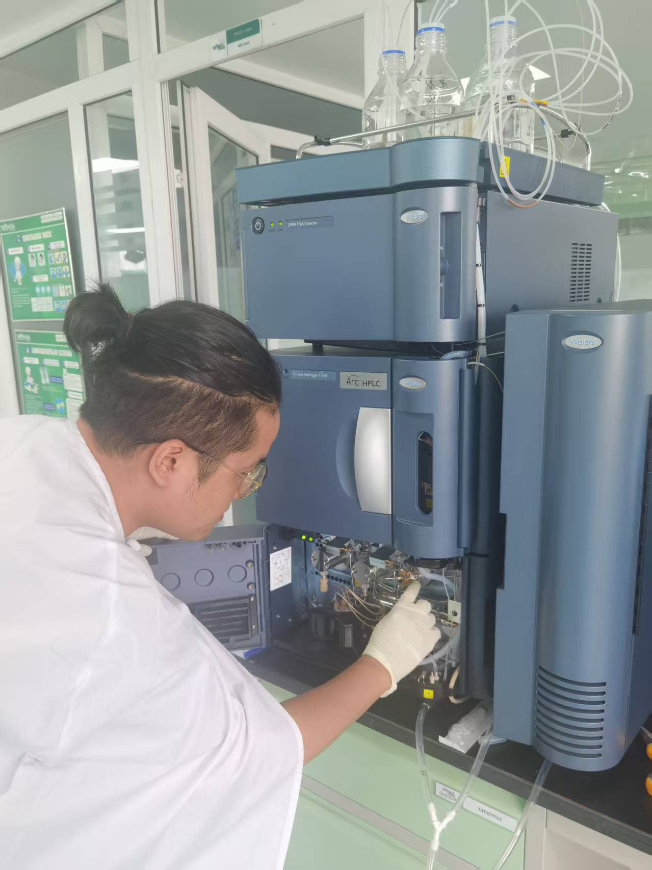 到达蒙古后,工程师们立即投入工作。他们首先对液相色谱仪进行了全面的检查,包括硬件系统的各个组件,如泵、检测器、进样器等,以及软件系统的参数设置和数据采集功能。通过严谨的检测流程,精准定位到仪器存在的问题,并迅速制定了维修和维护方案。在维护过程中,工程师们严格遵循公司的服务标准和操作规范,对仪器进行了深度清洁、关键部件的更换以及性能校准。对于一些老化的部件,他们选用了高品质的原厂配件进行替换,以确保仪器恢复到最佳运行状态。