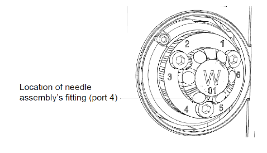 6.从进样器阀 4 号位拧下针装置的接头。