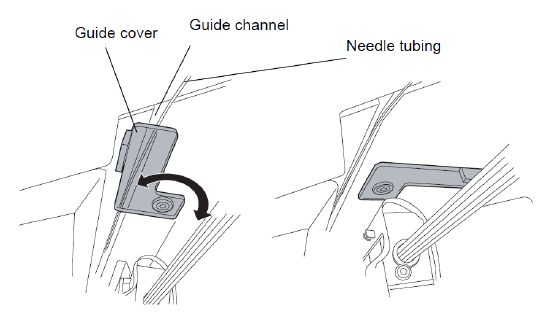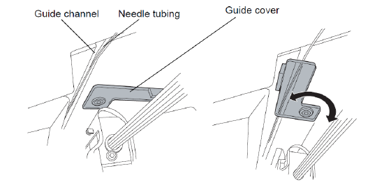15.确保针管路引向针滑架导轨的左侧并固定在室顶部上的导孔通道中。