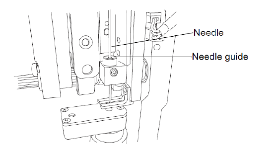 9.将针尖提出针装置底部的针导向器。