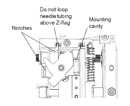 注意:为避免损坏仪器,请不要将管路松环置于 Z 标记上方。