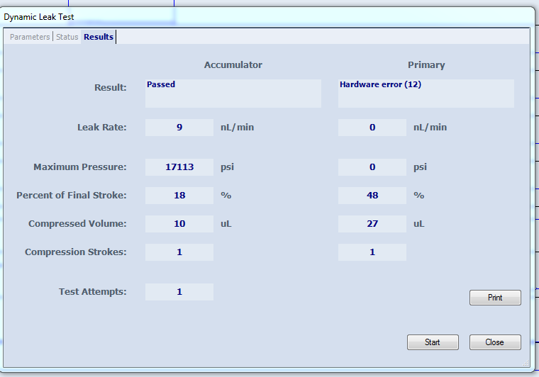 - 动态渗漏测试的初级泵压缩步骤提示错误信息:Hardware Error (12)(硬件错误 (12))